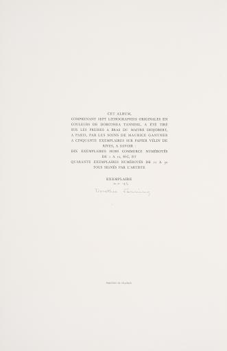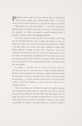 Les 7 Périls Spectraux, Lithographies originales en couleurs par Dorothea Tanning / Pourquoi Rester Muets?, par A. Pieyre de Mandiargues, Dorothea Tanning; Librairie Les Pas Perdus, Paris; Atelier Desjobert; Maurice Gantner; Andre Pieyre de Mandiargues