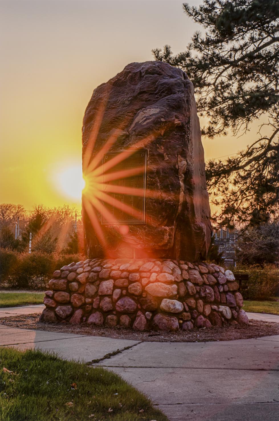 This exhibition tells the story of the rematriation of Iⁿ‘zhúje‘waxóbe, or the Sacred Red Rock, from the City of Lawrence, Kansas, to Kaw Nation through artwork created by local artists and Kaw tribal citizens. The Sacred Red Rock is a 28-ton red Siouxan quartzite boulder that holds immense cultural and spiritual significance for the Kanza people of the Kaw Nation. The Rock originally sat at the confluence of the Kaw River and Shunganunga Creek near Tecumseh, Kansas, after being deposited by glaciers. When the U.S. government forced the Kanza off their land in 1873, they were separated from the Sacred Red Rock. In 1929, the boulder was taken and moved to Lawrence, Kansas, as part of the city’s 75th-anniversary celebration and remained there for nearly 100 years. While efforts to rematriate Iⁿ‘zhúje‘waxóbe go back to the 1990s, it wasn’t until 2021 that the Lawrence City Commission voted unanimously to issue a formal apology to Kaw Nation and assist with the return. In June of 2024, the project celebrated the rematriation of the Sacred Red Rock in its new home at Allegawaho Memorial Heritage Park, which is on land owned by Kaw Nation near Council Grove, Kansas. Return of the Sacred Red Rock is curated by Sydney Pursel alongside an advisory committee of Kaw Nation citizens.